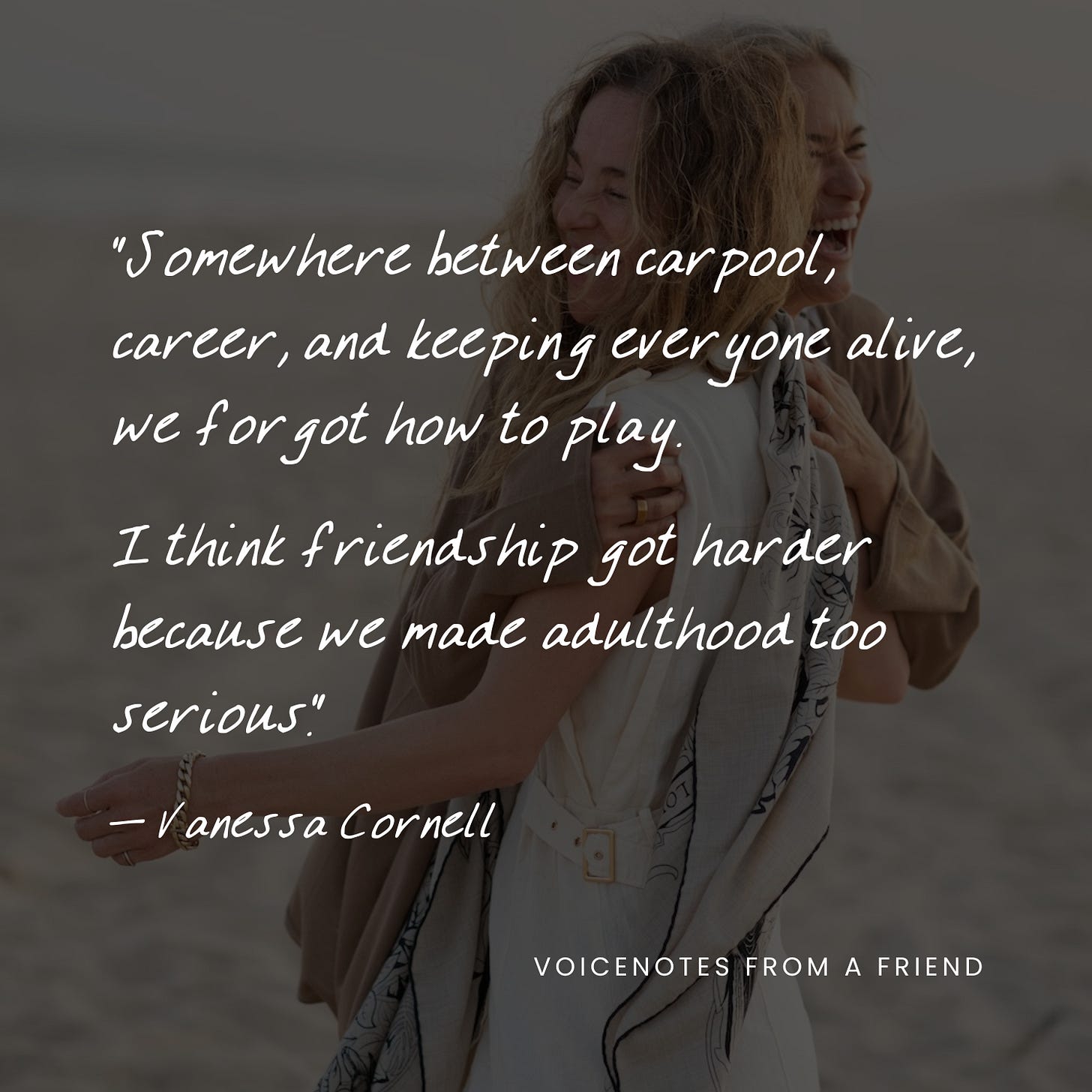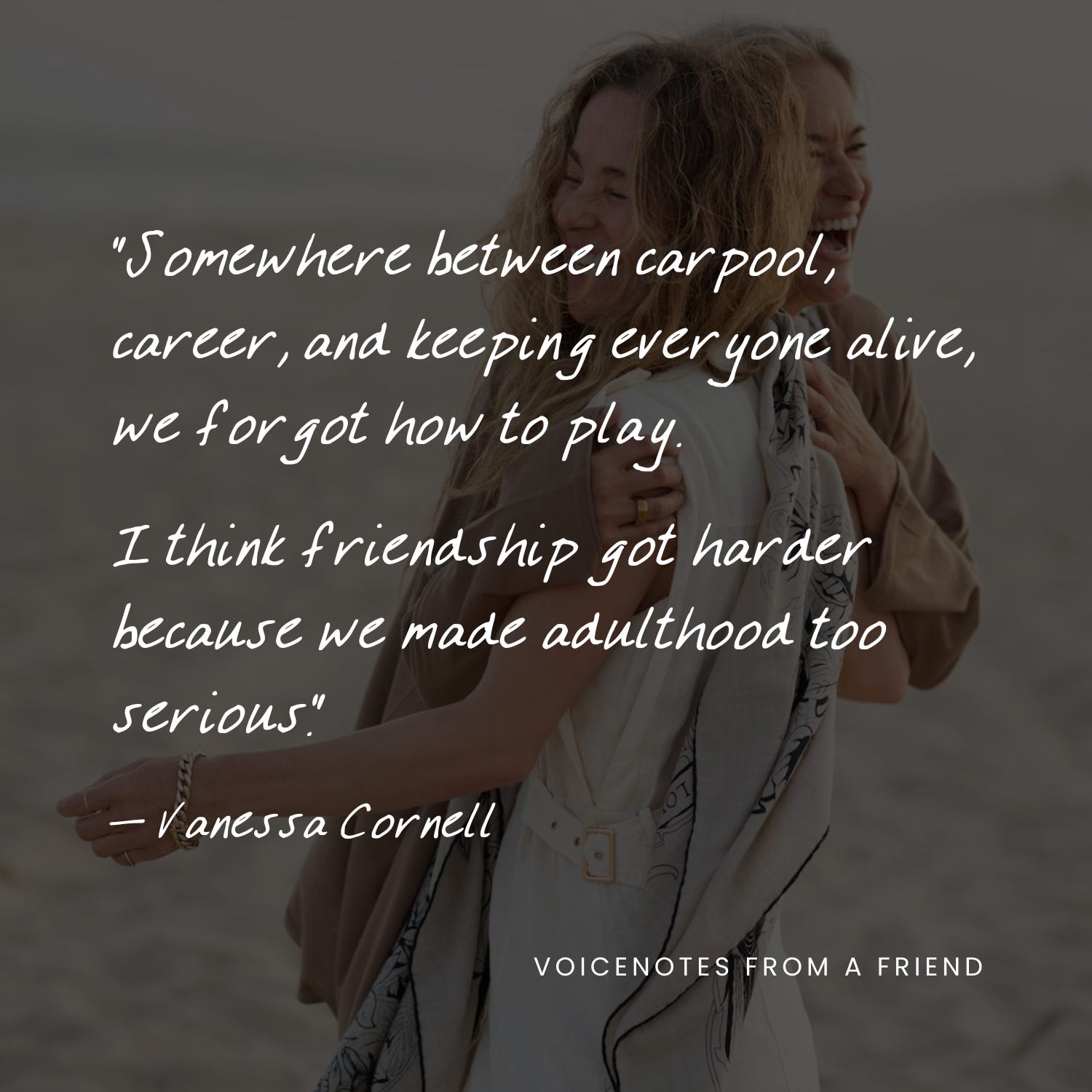 So I would argue that friendship is no longer a “nice to have.” It’s essential for health. And I’m going to keep beating this drum over and over again, not just in this voicenote, but in others, because anything we can do to build our relationships and friendships isn’t just helpful, it’s responsible.